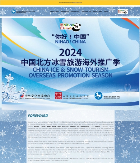 Accessible through the official website and social platforms of the China National Tourist Office and the China Cultural Center in Sydney, this virtual experience kicked off with a theme photo exhibit Continuing to Write the Grand Chapter of Ice and Snow. Subsequently, it will display the distinctive ice and snow tourism offerings from the nine regions in China.