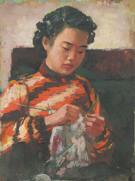 Shuzhuang Knitting a Sweater of Jiang's exhibition. [Photo by JIANG FAMILY/TAIKANG ART MUSEUM/CHINA DAILY]